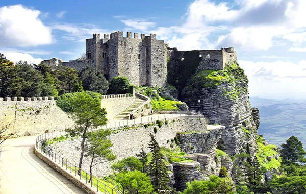 La nostra escursione privata a Erice da Trapani dura circa 4 ore e si adatta ai tuoi ritmi. Il percorso in auto sale attraverso la macchia mediterranea — corbezzoli, lentischi, capperi selvatici — offrendo già durante la salita una serie di panorami sorprendenti. Una volta in vetta, il borgo si esplora a piedi: il Castello di Venere, il cui belvedere sulla costa è uno dei punti fotografici più amati di tutta la Sicilia; la Chiesa Madre del XIII secolo con la sua torre campanaria; il Giardino del Balio, dove in primavera fioriscono migliaia di rose.